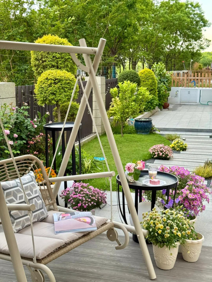 不是奢华的别墅,不是精装的公寓,就是一片泥土,几株花草,几张旧椅,却仿佛能把全世界的宁静和温柔都装下。